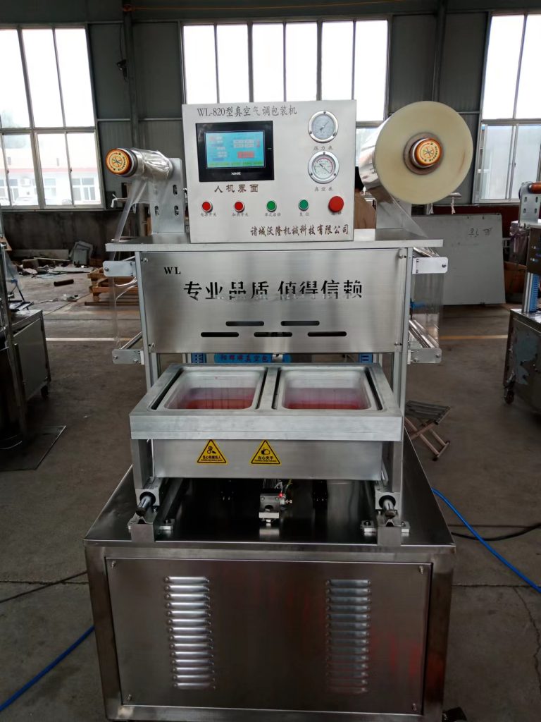真空气调包装机广泛适用于:生鲜肉、熟肉制品、鱼类、家禽、贝类、水果、咖啡、茶叶、蔬菜、面包等超市配送食品。真空气调包装具有使食品保质、保鲜、保色、保形、保味的特点,风靡欧美市场。真空保鲜包装机主要针对盒装肉类,熟食等产品进行 、紫外线杀菌、抽真空、充气 然后封口操作。高度自动化是其最大技术特点,真空保鲜包装机主要通过对盒内食品的抽真空,和充保鲜气体操作来确保产品得以更好的保存,和延长保鲜时间。本机可配置充氮气 氧气 二氧化碳充气装置,可延长保鲜时间。适合熟食,生鲜等食品的锁鲜包装.
